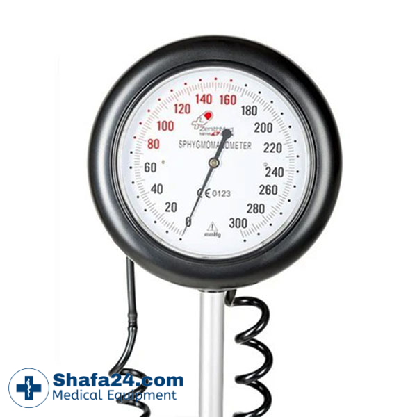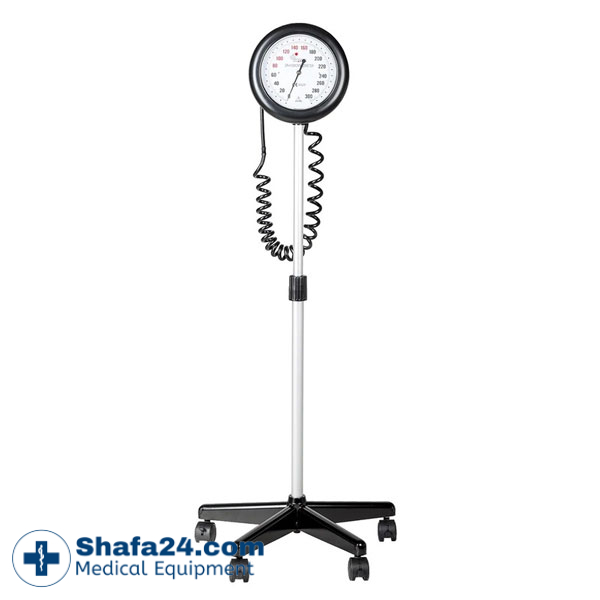 - نوع دستگاه: فشارسنج عقربهای بازویی پایهدار با مانومتر آنروئید — کاملاً مکانیکی، بدون نیاز به برق یا باتری.