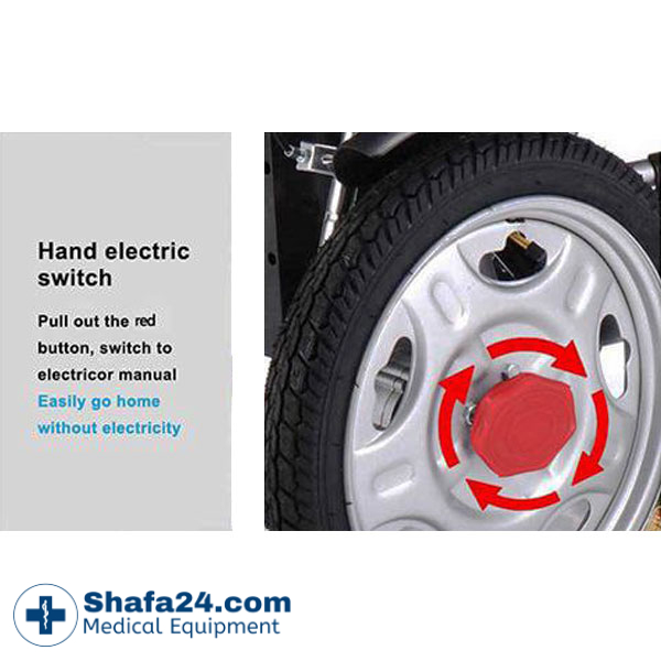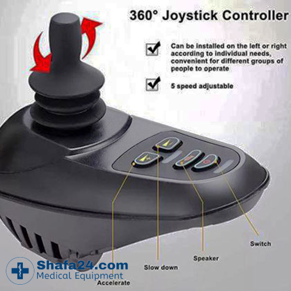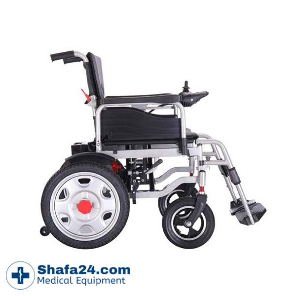 طراحی تاشو و کمحجم ویلچر سبب شده حمل و نقل آن با خودرو یا در محیطهای کوچک بسیار آسان شود. کمر تاشو، دسته متحرک و جاپایی متحرک ورود و خروج از ویلچر را راحتتر کرده و به اطرافیان کمک میکند تا در صورت نیاز، سریع و بدون دردسر کاربر را جابهجا کنند. سیستم کنترل برقی با قابلیت چرخش ۳۶۰ درجه به شما اجازه میدهد در فضاهای تنگ و شلوغ با کمترین حرکت و بدون فشار اضافی مانور دهید. ترمز دستی در کنار کنترل برقی، امنیت کاربر را حتی در شیبها تضمین میکند.