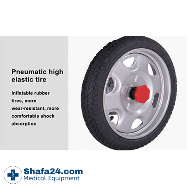 چرخها: چرخ جلو پنوماتیک ۱۰ اینچ و چرخ عقب پنوماتیک ۱۶ اینچ برای حرکت نرم و پایدار