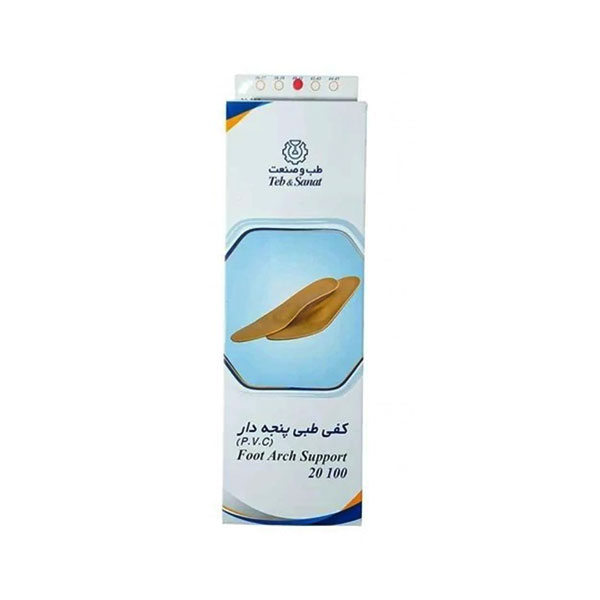 کفی طبی پنجه دار PVC طب و صنعت مدل 20100 با طراحی آناتومیک و استفاده از جنس P.V.C نرم و مقاوم، جهت اصلاح قوس کف پا و جلوگیری از بروز درد و خستگی طراحی شده است. این محصول با دارا بودن قوس طولی و عرضی استاندارد باعث توزیع یکنواخت فشار وزن بدن در کف پا شده و از ایجاد درد و حساسیت در نواحی پاشنه و سینه پا جلوگیری میکند.