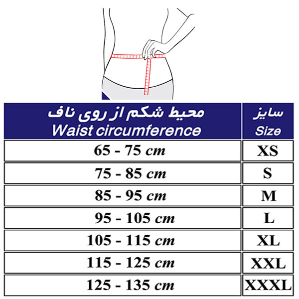 کرست را بر اساس سایز دقیق بدن (دور کمر) انتخاب نمایید.